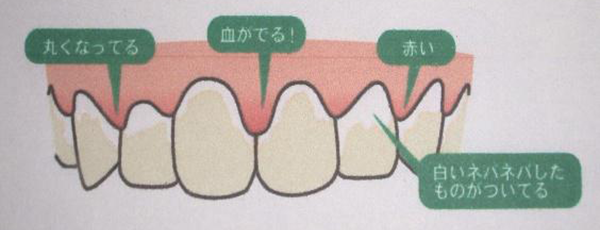 鏡をよく見ると歯肉が赤くなっていたり、ぷくぷく丸くなっているところはありませんか?これが歯肉の病気『歯肉炎』です。